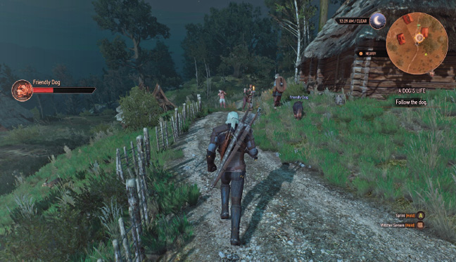 | Задачи: Следуйте за собакой. Обыщите заброшенный дом, используя свое Ведьмачье чутье. |