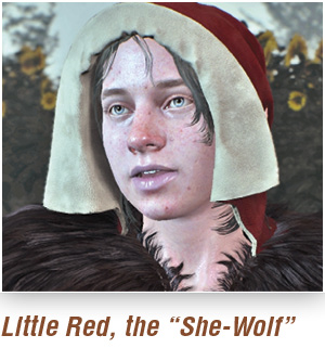 - Скажите ей: «уходи или будет кровь», и она превращается в волколака, а затем набрасывается на вас. Бой может быть сложным. Сначала сосредоточьтесь на бандитах и избегайте зверя, используя Ирден, чтобы замедлить его. Убейте Красную Шапочку и четырех бандитов вместе с ней, прежде чем встретиться со старостой для получения вашей награды. После этого обыщите волосатый труп Красной Шапочки в поисках её дневника.