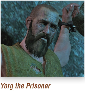 Вдоль коварного северного берега главного острова Скеллиге, к востоку от древней гробницы и к северу от поселка Рогне, к скалам прикован одинокий заключенный. Убейте гарпий вокруг него. Йорг говорит, что его подставили, обвинив в убийстве, которого он не совершал. Можете оставить его, если не верите его истории или освободить его. Если бросите его, то Йорг погибает от когтей гарпий, а квест будет провален.