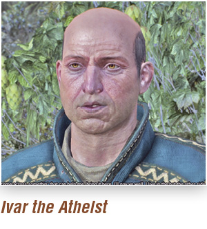 - Остановите воина, бросив ему вызов на бой. А потом поговорите с человеком, которого вы спасли. Это Ивар, и сестра воина сбежала с ним, вместо того чтобы служить богине Фрейе. Ивар не верит в "этот вздор о богах" и отчаянно хочет воссоединиться с Ирмой. Для этого ему нужны доказательства, чтобы доказать жрицам; о дырах в принципах религии. Согласитесь найти любые тексты, которые могут помочь его делу, и отправляйтесь в путь.