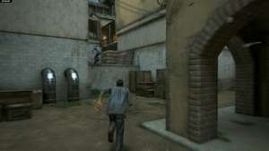 Следуйте за Сэмом по крышам, затем используйте желтый подмосток, чтобы спрыгнуть на уровень земли. Продолжайте следовать за Сэмом, когда он входит в ближайший туннель, и используйте уклонение/перекат, чтобы не попасть под огонь охранника в конце переулка.