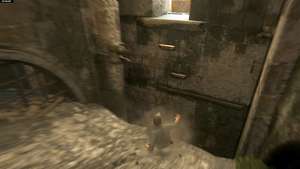 Оказавшись на стене башни, используйте выступы слева или справа (и за углом), чтобы добраться до одного из двух окон под парапетами.