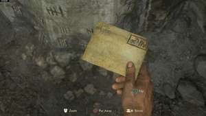 ↑Внутри камеры вы найдете кучу символов и римских цифр, вырезанных на стенах - возможно, вы также заметили похожие символы на письме, которое Варгас дал вам ранее. Чтобы заставить Нейта установить эту связь, изучите символы Солнца/Луны в углу камеры рядом с дверью, затем вытащите письмо и переверните его.