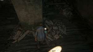 Как только вы впервые заберетесь в башню, спуститесь на нижний этаж, и вы увидите сокровище, сияющее в груде обломков. Это близко к забаррикадированному окну, который нужно снести крюком.