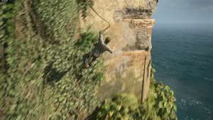Перепрыгивайте через выступ, затем раскачайтесь вправо и взбирайтесь по потрескавшейся стене. Используйте выступ, идущий за угол, чтобы продолжить восхождение, затем соскользните по сланцевому холму и прыгните в безопасное место, используя веревку. Повернитесь к стене с другой стороны и возьмите кирпичи, чтобы продолжить движение.