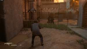 Спрячьтесь за одним из столов, чтобы не пострадать от людей Гектора, которые строят для вас новую дверь, затем следуйте за Алькасаром в переулок техобслуживания. Катитесь, чтобы избежать входящего огня охранников за забором, и нырните в нишу слева, чтобы следовать за Гектором. Завершите QTE, когда появится охранник, и следуйте за Алькасаром вверх по лестнице в прачечную.