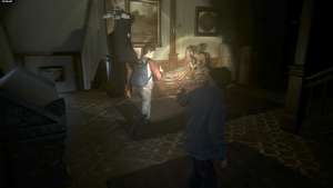 Заберитесь на крышу гаража, затем прыгните обратно в главный дом, чтобы присоединиться к Сэму и подняться к открытому окну. Перепрыгните через подоконник, чтобы попасть внутрь.