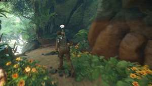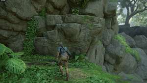 Пройдите под большим упавшим деревом к краю обрыва, чтобы отметить большую лифтовую систему. Развернитесь с обрыва и заберитесь на уступы впереди себя. Прыгайте на каменную стену слева и используйте крюк, чтобы подняться на выступ наверху.