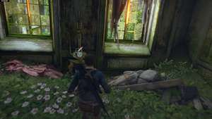 Пройдите через дверь спальни и заберитесь на обрушившуюся крышу. Идите к наклонной крыше и прыгните в окно третьего этажа, затем спрыгните через дыру в стене слева от вас.