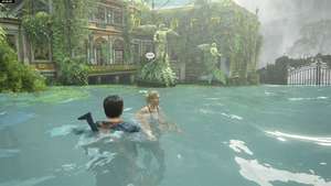 Переместите ящик под стеной, затем поднимитесь наверх и выйдите за Еленой. Идите по крыше здания, пока оно не рухнет, затем соскользните в воду внизу.