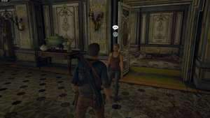 Осмотрите область за большим столом, чтобы найти зажигалку Сэма. Поговорив с Еленой, осмотрите доспехи на другой стороне стола, чтобы вызвать кат-сцену.