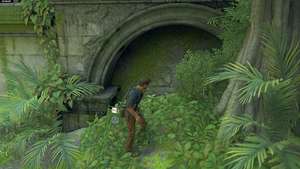 Идите к большому дереву, провалившемуся сквозь стену, затем заберитесь на каменную лестницу. Поднимайтесь вверх, перепрыгивая через небольшую щель, затем направляйтесь к стене, по которой можно лазать, напротив конца ступенек.