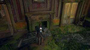 Плывите по затопленной площади и поднимайтесь по ступеням большого поместья слева от вас. Пройдите через открытое окно слева от главной двери и через дверь в задней части комнаты.