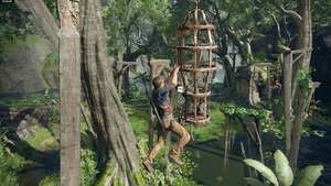Когда лестница обрушится, качнитесь с ветки, на которой вы вешаетесь, к пористой стене перед вами и используйте крюк, чтобы ухватиться за камень. Поднимитесь обратно на вершину, чтобы встретить Елену возле особняка Эйвери.