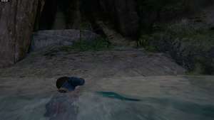 После приземления в бассейн развернитесь и плывите в дальний конец камеры. Нырните под воду и плывите между двумя каменными стенами, затем всплывите на поверхность и снова нырните. Плывите через проход справа, чтобы добраться до нижней части дока. Это вызовет кат-сцену и завершит главу.