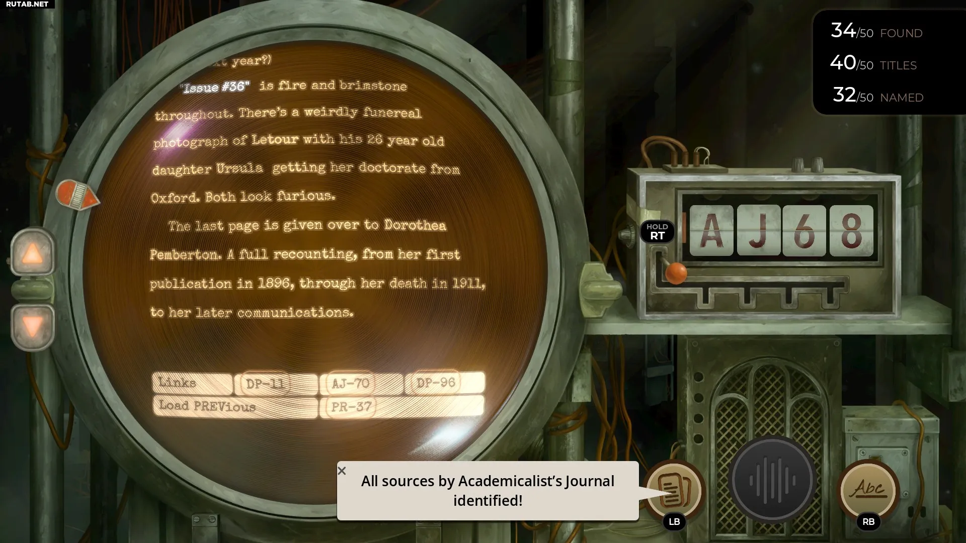 В целом, игра несколько добрее, чем Obra Dinn и Golden Idol, и не только потому, что позволяет мне потакать своему внутреннему читерскому отродью. Если просмотреть заметки, то у обнаруженных авторов к их файлам прикреплены рисунки. Когда вы найдёте все их работы в машине, рисунок превращается в фотографию — это мягкий намёк, что ваше внимание теперь лучше направить в другое место. В библиографиях также будет стоять звёздочка рядом со страницами, которые всё ещё содержат ключи к ещё не открытым записям. Игра никогда не водит вас за руку, но она отлично подталкивает в нужном направлении.