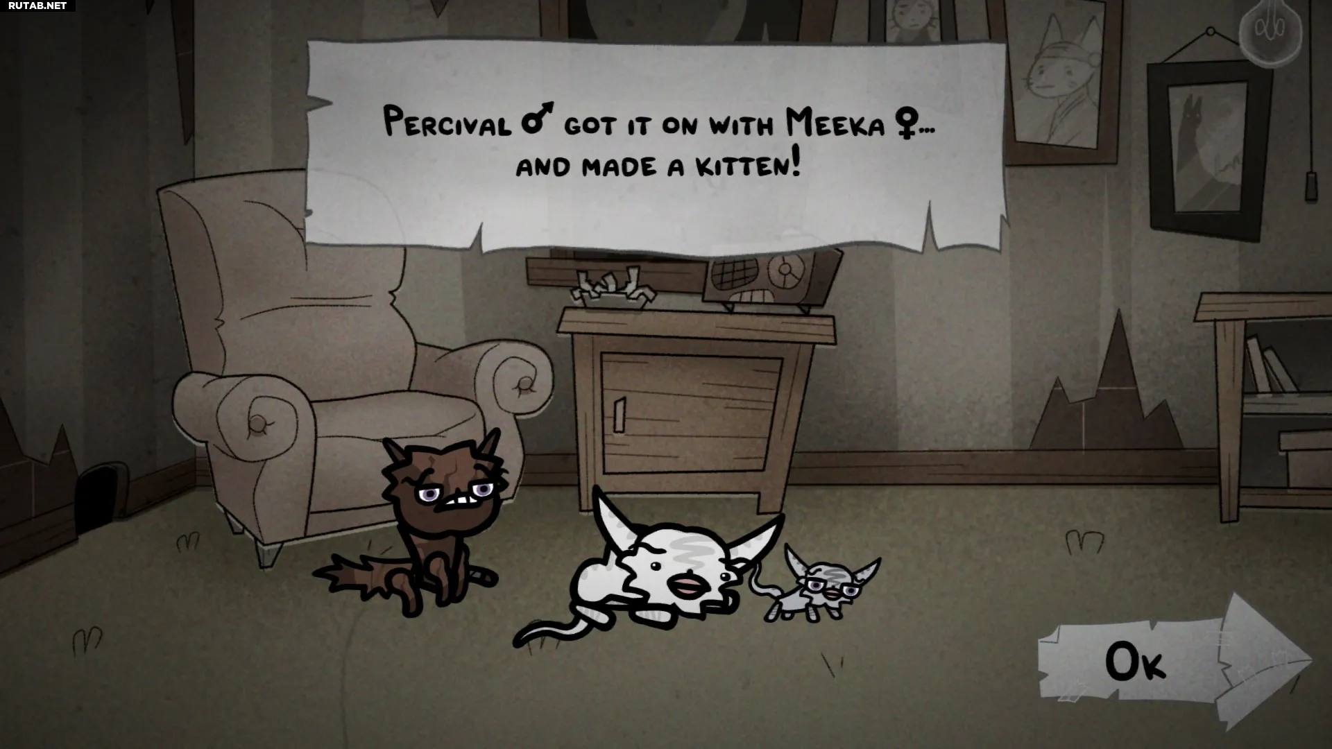 Чем глубже вы погружаетесь в эту систему, тем больше слоёв она открывает. Отдавая нежелательных котят местному NPC, вы получаете всё больше информации о внутренней жизни своих питомцев: от характеристик, которые они передадут потомству, до полного генеалогического древа и даже их сексуальной ориентации. А когда коты возвращаются из приключений, отмеченные опытом и странностями, элементы вроде мутаций, мощных классовых способностей и наследственных расстройств начинают просачиваться через поколения.