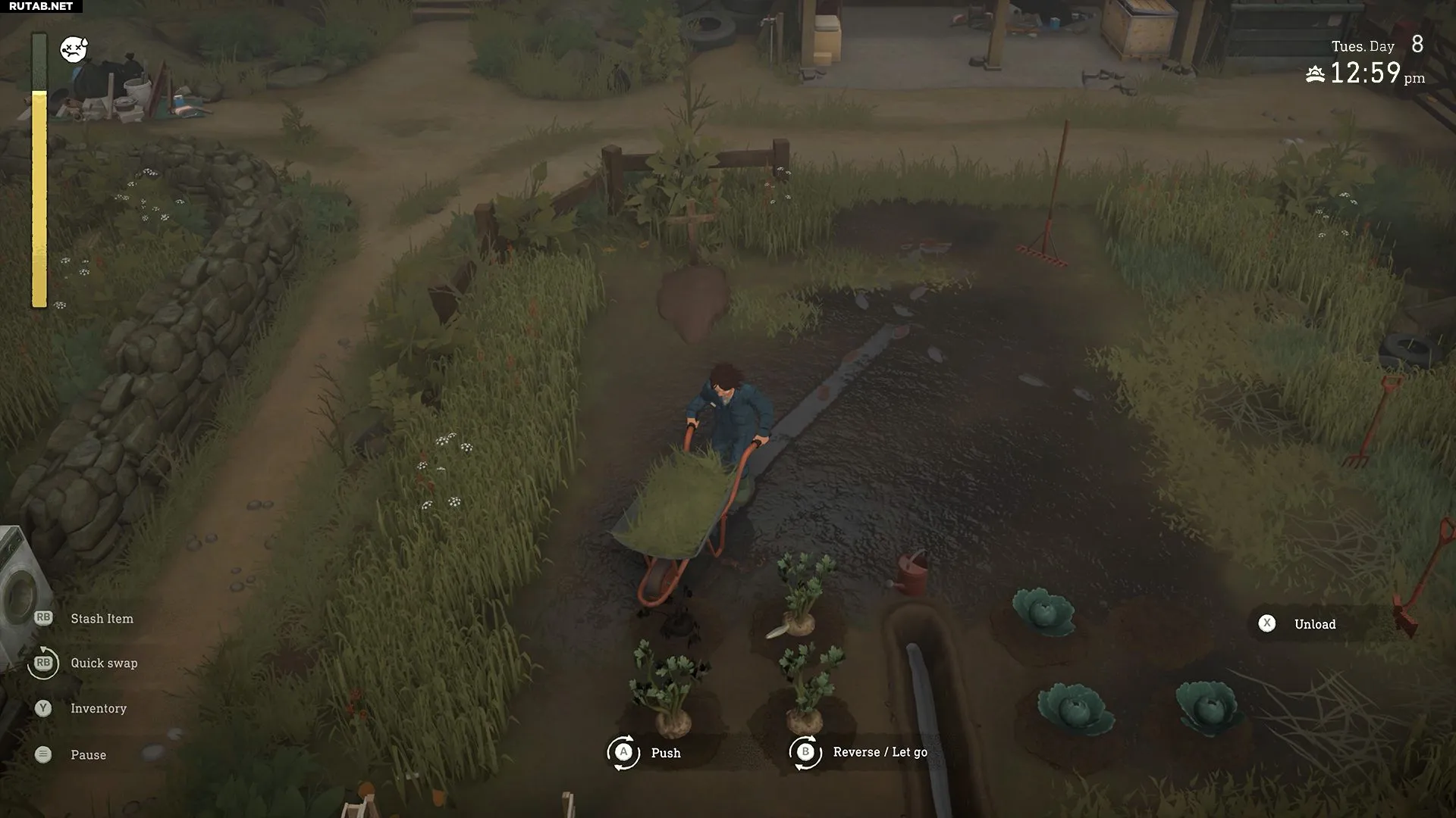Мне нравится, как Кроп заставляет чувствовать, что вы начинаете с нуля. Ваша ферма завалена мусором и заросла сорняками, которые нужно убрать ещё до того, как вы подумаете о посадках. Мосты сломаны, инструменты повреждены или утеряны, а удобрения не всегда можно просто купить в магазине — зачастую их приходится изготавливать и обрабатывать самостоятельно. Это медленный, трудоёмкий процесс, но он делает каждое полученное или созданное улучшение по-настоящему ценным. Однако тяжёлая работа не заканчивается, даже когда дела пошли в гору. Например, построив ирригационную систему, вам всё равно придётся регулярно прочищать каналы своей верной лопатой, иначе из-за постоянных дождей и паводков они забьются грязью и сорняками. Мне кажется, Кроп действительно отражает реалии фермерства, на которые редко решаются другие игры. Я уверен, что он заслужит место в списке самых сложных фермерских симуляторов.
