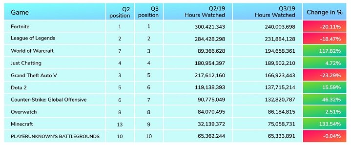На платформе от Amazon Fortnite потеряла свою популярность (падение на 20%). Хуже только у GTA V (-23,29%), и League of Legends также в минусе (-18,47%). Стоит однако отметить рост Minecraft и World of Warcraft (выше 100%). Ниже десятка самых популярных каналов, а еще чуть ниже самые популярные стримеры.
