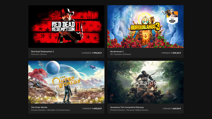 Скидки на RDR 2 и The Outer Worlds в магазине Epic Games