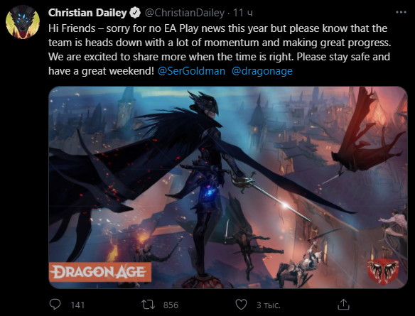 Исполнительный продюсер Dragon Age Кристиан Дейли в своем Twitter прокомментировал недавнюю новость насчёт следующей части фэнтезийной ролевой серии BioWare.