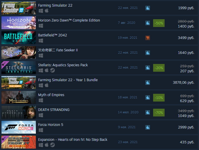 В России Farming Simulator 22 уступила первые три строчки рейтинга продаж (Steam) Horizon Zero Dawn, Days Gone и Death Stranding.