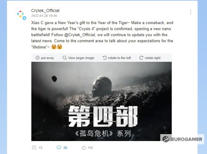 Интересно, что Crytek, видимо, хотела анонсировать игру чуть позже. Однако её китайское отделение поспешило опубликовать информацию (через Eurogamer). Запись была удалена, но все что попадает в интернет, уже остается там навсегда. Разработчики не стали прятать голову в песок, а просто анонсировали игру.