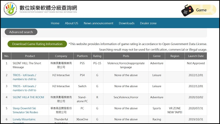 Судя по записи на веб-сайте Taiwan Digital Game Rating Committee (см. скриншот ниже), Silent Hill: The Short Message будет игрой приключенческого жанра (как и прочие части серии) как минимум для PlayStation 5.