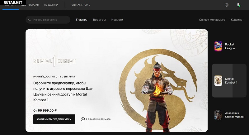Epic Games Store предлагает оформить предзаказ Mortal Kombat 1 за 100 тысяч рублей