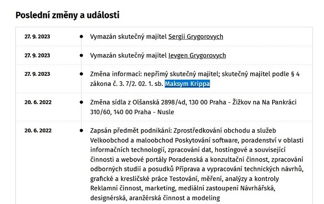 Как информируют украинские и чешские реестры, 22 сентября в случае GSC UKRAINE LLC (ООО «ГСК Украина») и 27 сентября в случае GSC Game World Czech s.r.o. (аналог ООО) компания сменила конечного бенефициарного владельца.