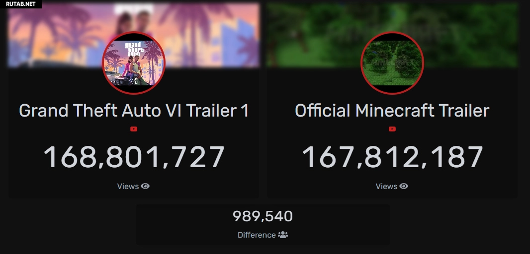 Теперь первый трейлер Grand Theft Auto 6 превзошел официальный трейлер Minecraft, который занимал титул второго по популярности игрового трейлера на YouTube. Трейлер GTA 6 на данный момент собрал почти 169 миллионов просмотров на платформе. Для сравнения, официальный трейлер Minecraft сейчас имеет около 168 миллионов просмотров, в результате чего разница составляет около 1 миллиона просмотров.