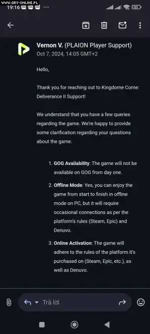 Как видно выше, рассматриваемая продукция не будет доступна на платформе GOG в день своего дебюта. Отметим, что сайт не использует защиту DRM (в том числе Denuvo), так что это должно быть одним из доказательств реализации этой системы в Kingdom Come: Deliverance II.