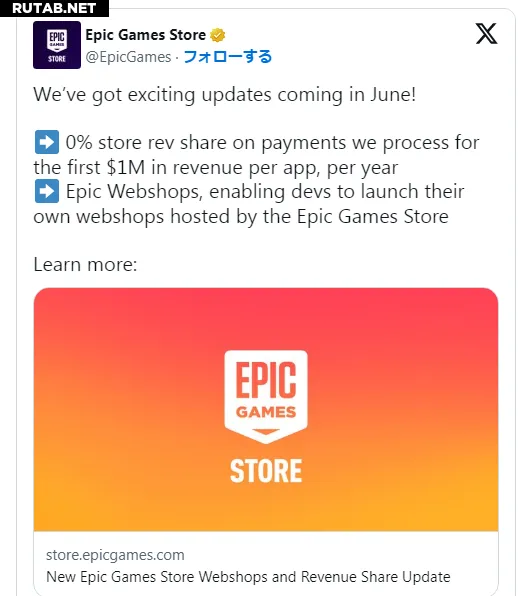 Epic Games Store объявил о новом правиле, которое вступит в силу в июне 2025 года: разработчики игр и приложений с годовым доходом менее $1 млн (около 85 млн рублей) не будут платить комиссию за распространение.
