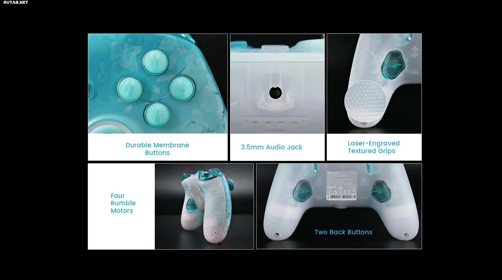 Для большего комфорта геймпад получил эргономичные рукоятки с лазерной гравировкой, 3,5-мм аудиоразъем и четыре вибромотора (по одному в каждом триггере и рукоятке).