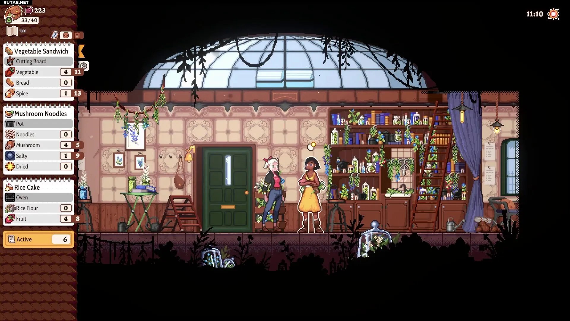 Собирайте новые рецепты и ингредиенты через торговлю, выполнение заданий, выращивание овощей в саду и исследование города Грат.