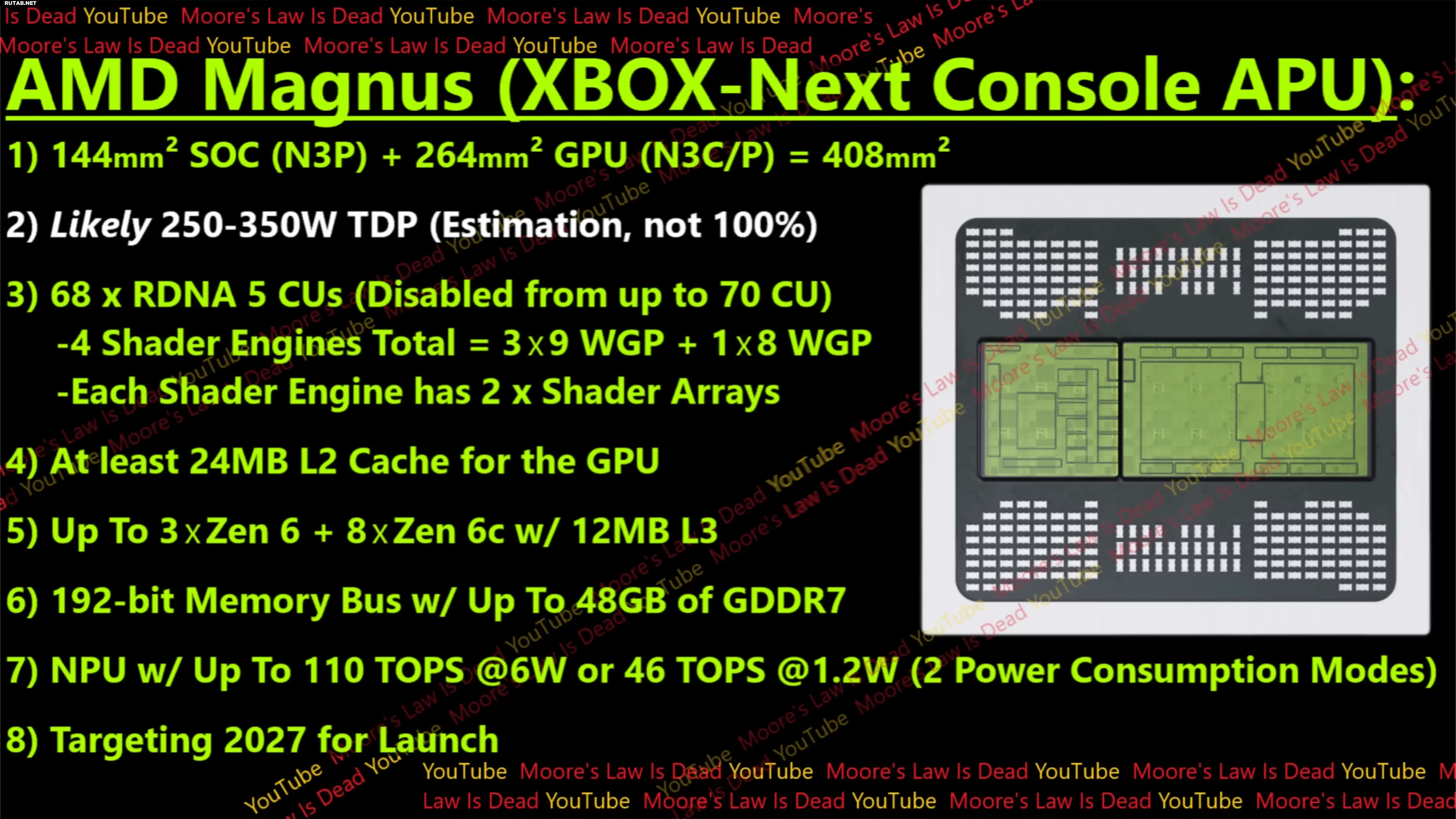 На YouTube-канале Moore's Law is Dead появились новые данные о гибридном процессоре AMD под кодовым названием Magnus, который будет установлен на материнской плате будущей консоли Xbox.