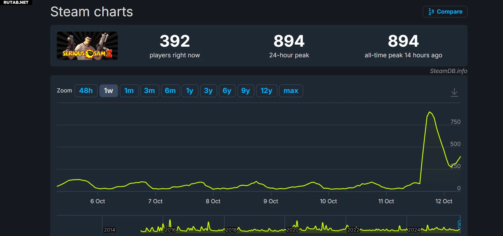 Культовый шутер Serious Sam 2 обновил рекорд пикового количества одновременных игроков в Steam. Это произошло после выхода крупного юбилейного обновления, посвящённого 20-летию игры — первая версия второй части вышла 11 октября 2005 года в Северной Америке, а затем и в других регионах.