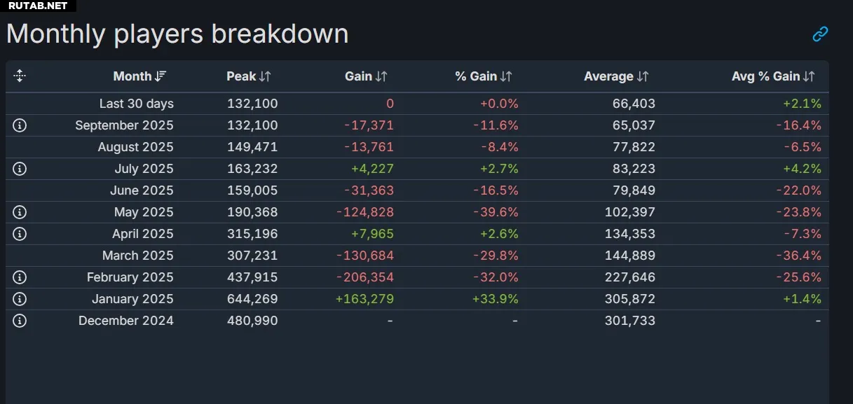 Согласно данным SteamDB, пиковый онлайн Marvel Rivals остаётся на прежнем уровне с сентября, застыв на отметке 132 100 игроков одновременно. Этот показатель был зафиксирован при старте 4-го сезона и стал худшим в истории проекта.