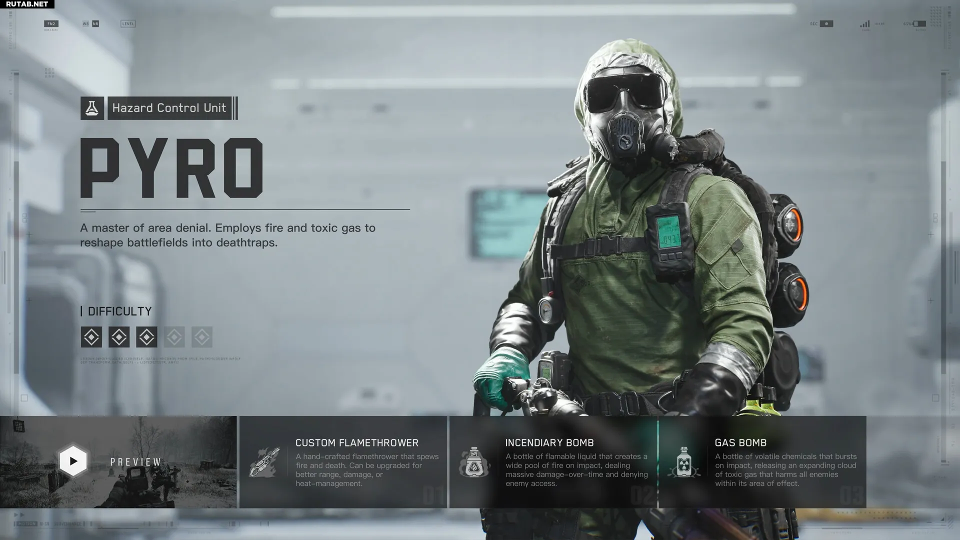 - «Пироман» — специалист по контролю поля боя с помощью огня и газа