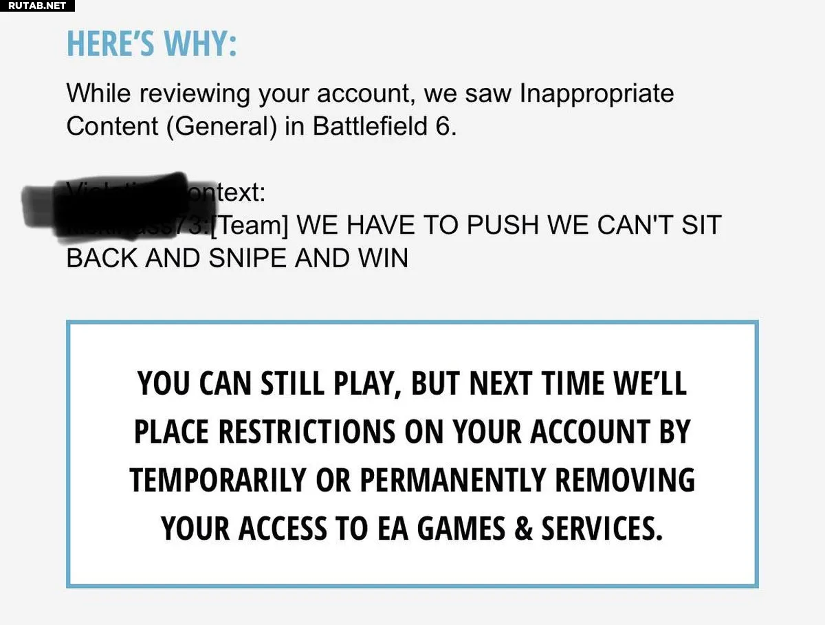 Electronic Arts вводит жёсткие меры против игроков, использующих ненормативную лексику в голосовом чате Battlefield 6. Пользователь Reddit получил официальное предупреждение от компании, в котором говорится, что повторное нарушение правил может привести к временной или даже постоянной блокировке аккаунта EA. Это означает потерю доступа ко всем приобретённым играм.