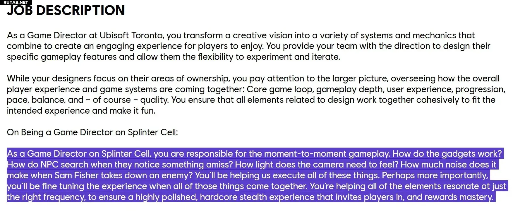 Спустя три года ситуация повторилась. Об уходе очередного геймдиректора стало известно не от Ubisoft, а благодаря появлению соответствующей вакансии на сайте компании. Новому руководителю предстояло заниматься проработкой всех ключевых аспектов игры — от реализации гаджетов до стелс-механик.