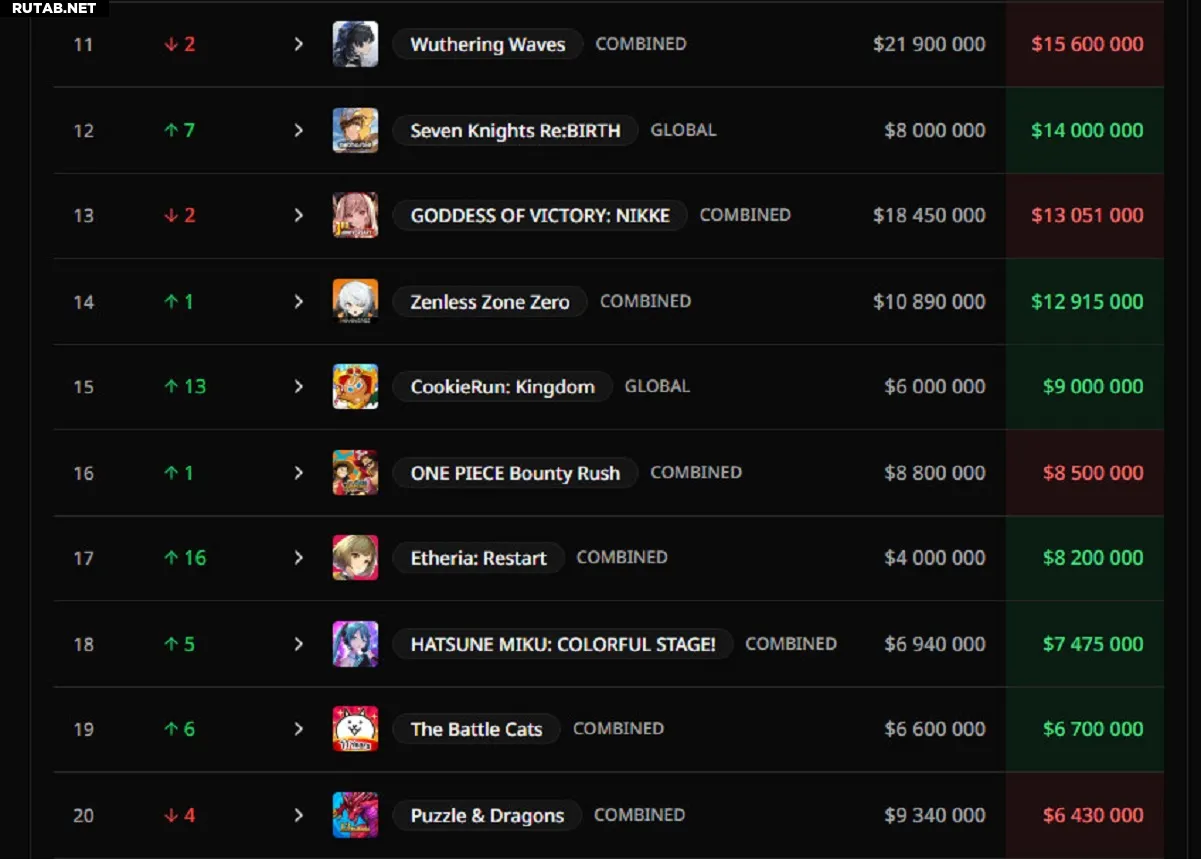 Любопытно, что Honkai: Star Rail заняла лишь восьмую строчку, показав падение выручки с 39,5 до 22,5 миллионов долларов. Другая игра от HoYoverse — Zenless Zone Zero — расположилась на 14-м месте с доходом 12,9 миллионов долларов, немного не дотянув до Goddess of Victory: Nikke.