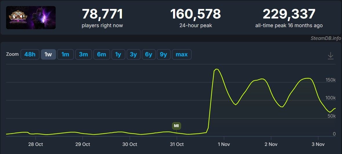 По данным SteamDB, пиковое количество одновременных игроков в Path of Exile во время запуска новой лиги превысило 185 000 человек. Это немного выше показателей предыдущего обновления, хотя и не дотягивает до рекордов самых популярных лиг — «Раскалённого оружия» (Crucible) и «Поселенцев Калгура» (Settlers of Kalguur).