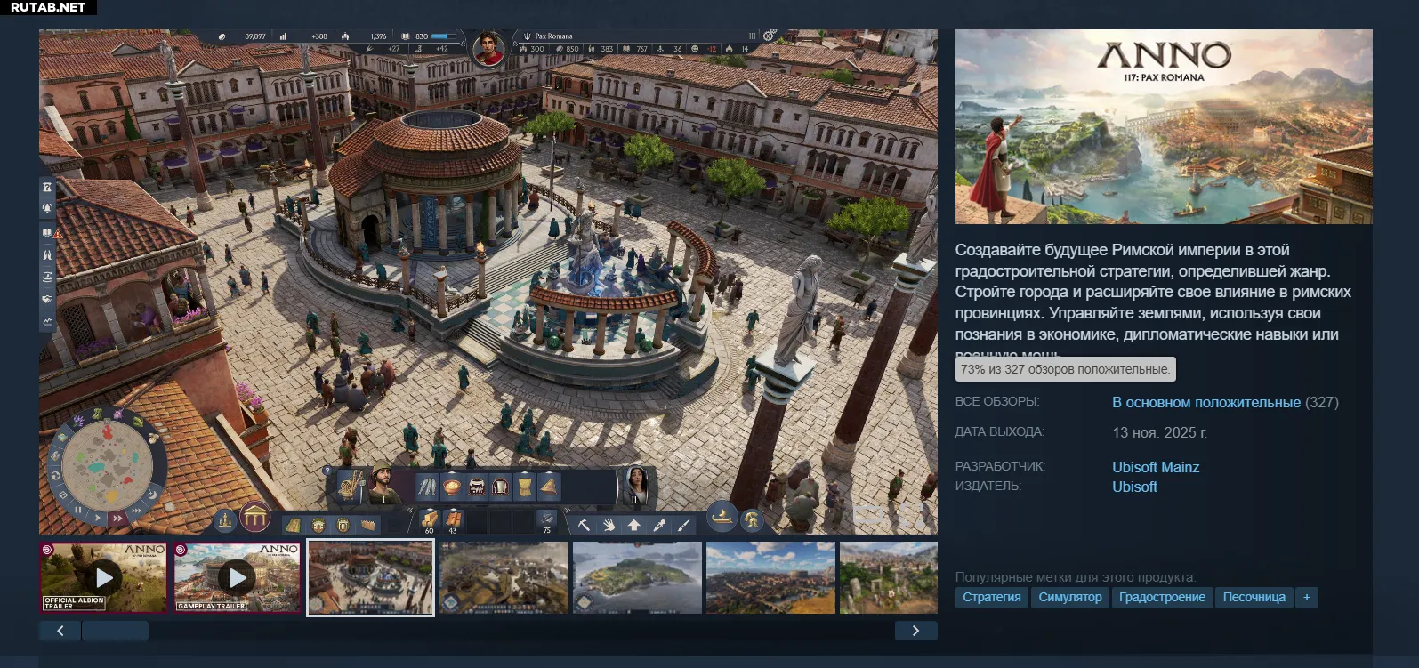 Новая градостроительная стратегия Anno 117: Pax Romana от Ubisoft уже вышла на PC, PS5 и Xbox Series. После положительных оценок критиков игра получила тёплый приём и от игроков.
