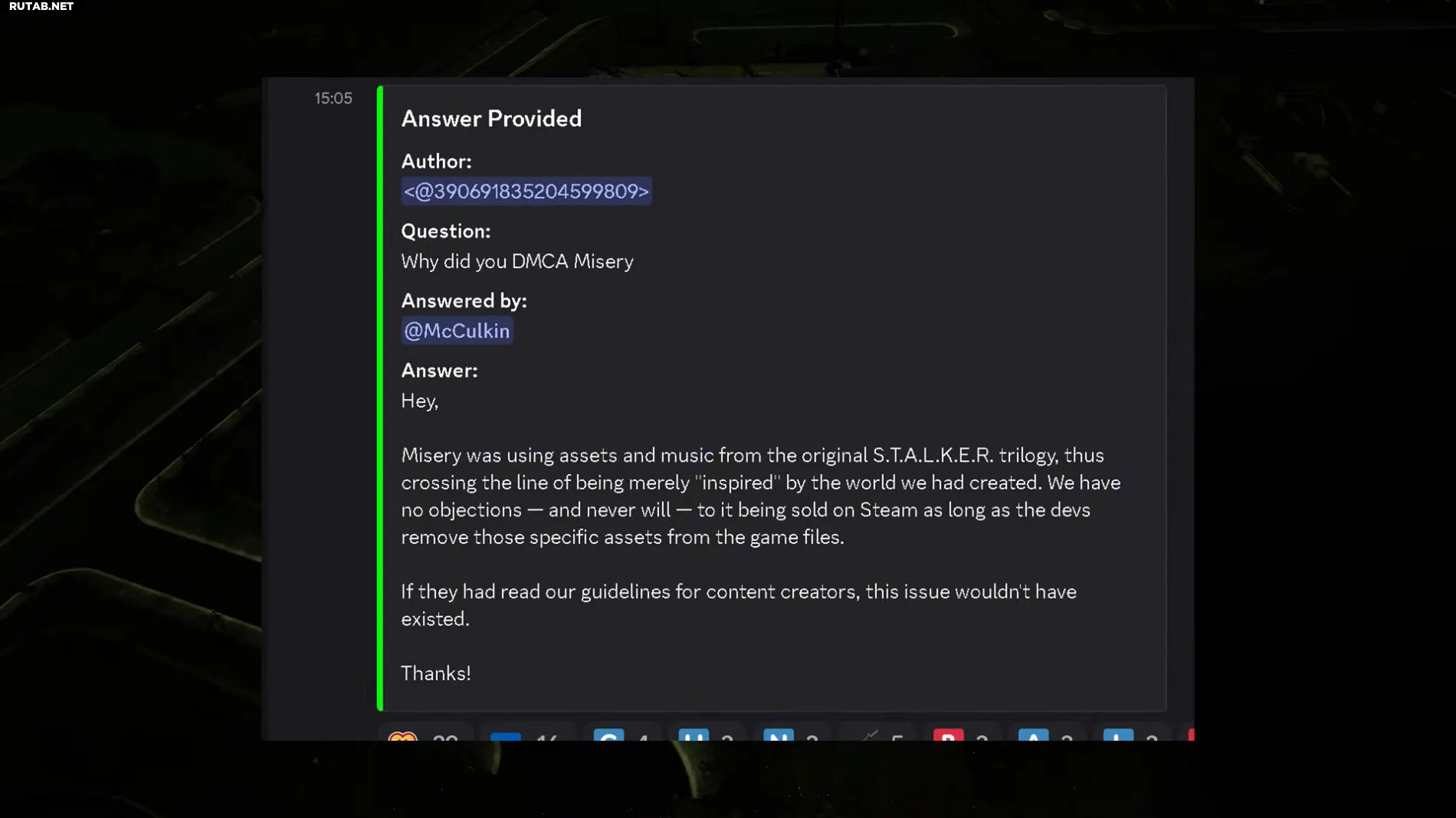 Конфликта можно было избежать, если бы разработчики Misery следовали официальным рекомендациям GSC Game World для создателей фанатского контента.