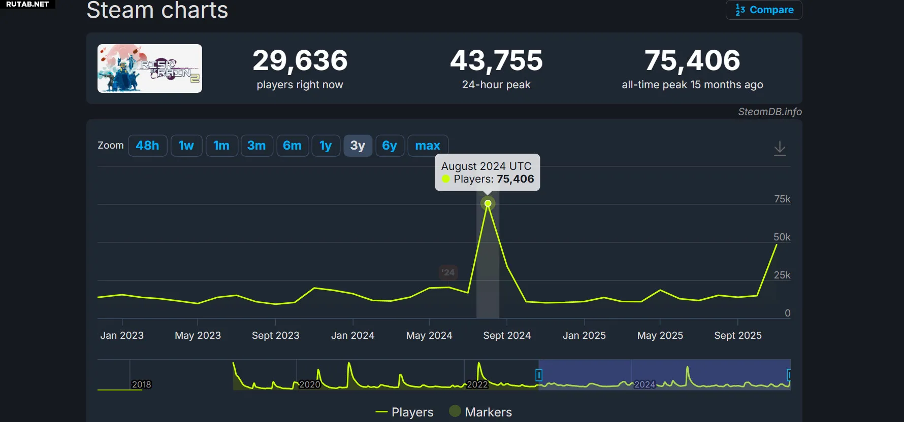 Новое дополнение значительно увеличило онлайн-активность Risk of Rain 2. 19 ноября количество одновременных игроков превысило 48 тысяч человек. Более высокие показатели последний раз наблюдались в августе 2024 года при выходе DLC Seekers of the Storm, которое столкнулось с критикой и до сих пор имеет «смешанные» пользовательские отзывы.