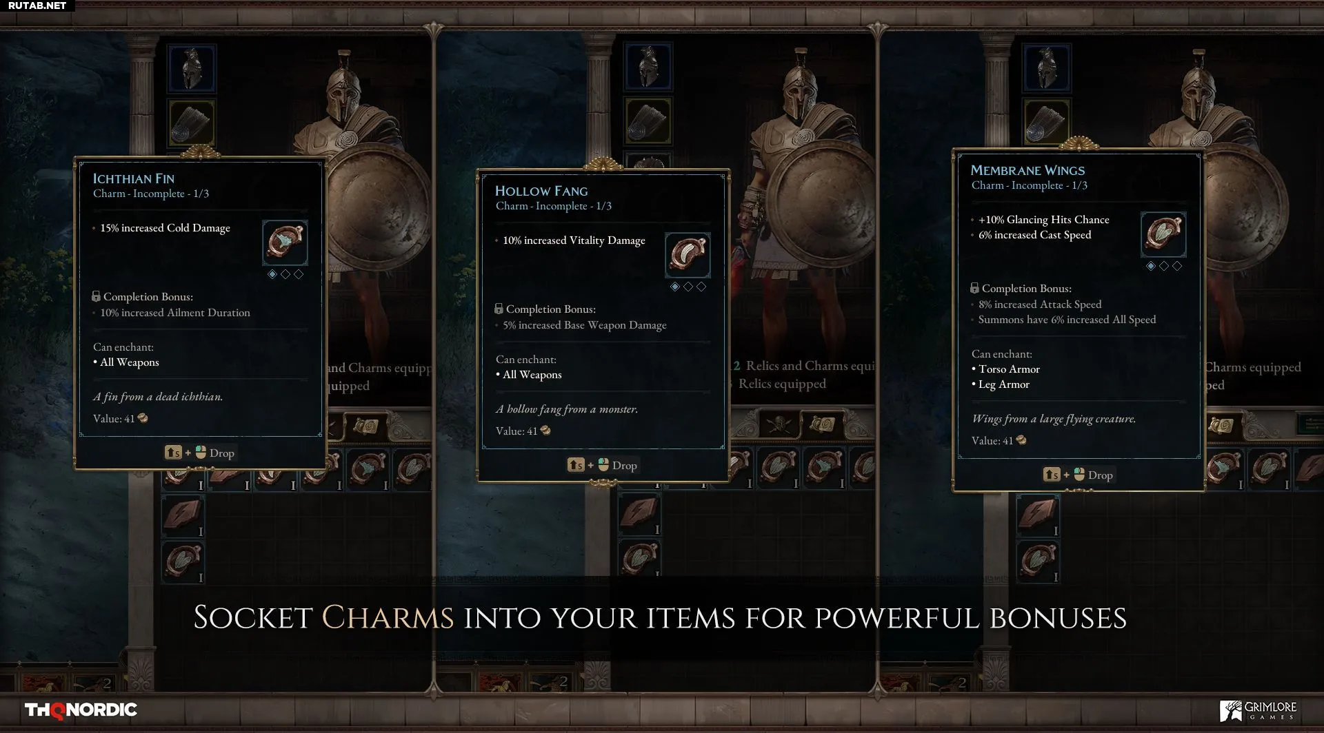 Амулеты и реликвии попадут в новую секцию снаряжения, а их установка и извлечение будут возможны без риска потери предмета, что должно поощрить тестирование различных сборок. Грядущее обновление добавит около 40 таких улучшений, однако Grimlore Games уверяет, что это лишь начало. В будущем, с каждым следующим обновлением, будут появляться новые амулеты и реликвии.