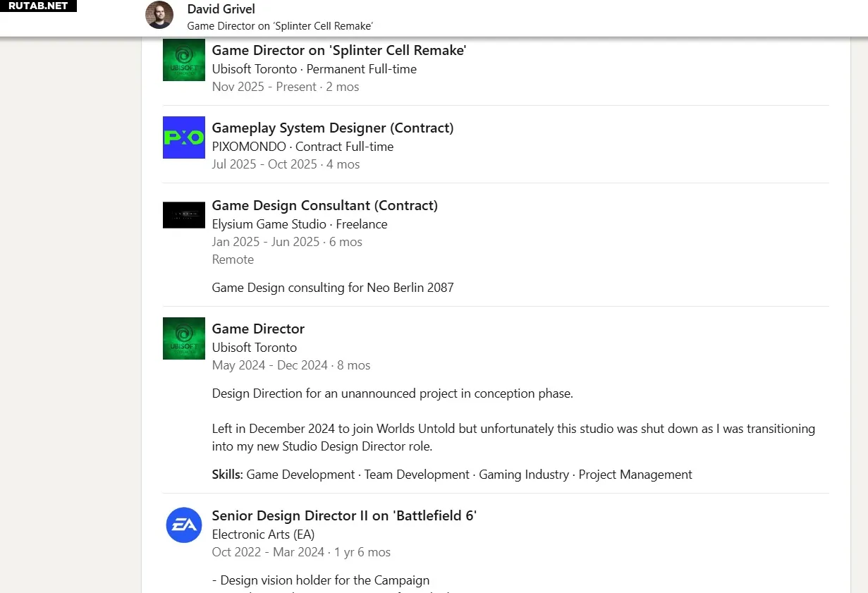 Проект ремейка Splinter Cell, который долгое время находился в подвешенном состоянии, получил нового руководителя. Им стал Дэвид Гривел, который уже занимал пост геймдиректора игры до своего ухода из Ubisoft в 2022 году.