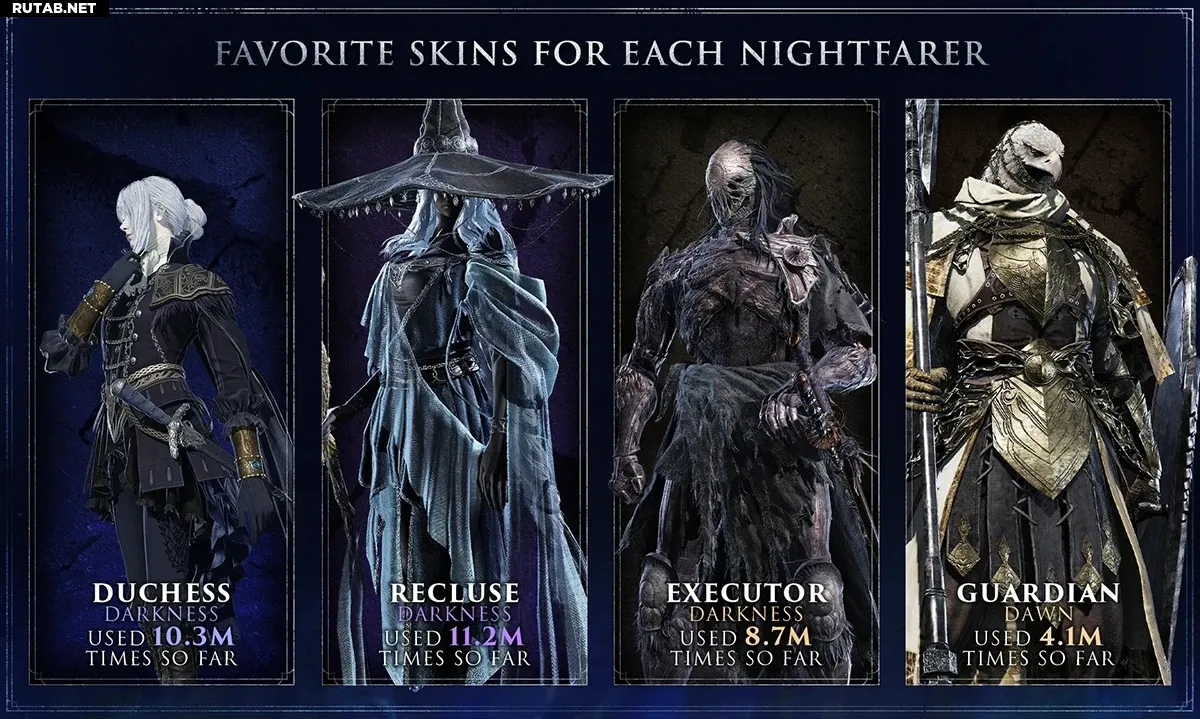 Всего в игре было совершено 1.2 миллиарда воскрешений — число, которое сложно представить. Bandai Namco также раскрыла самые популярные скины для каждого «ночного странника» (nightfarer). Если рассматривать их как косвенный показатель популярности самих персонажей, то рейтинг выглядит так: