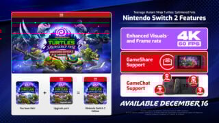 Компания Super Evil Megacorp анонсировала Teenage Mutant Ninja Turtles: Splintered Fate – Nintendo Switch 2 Edition. Релиз состоится 16 декабря. Владельцы версии для оригинальной Nintendo Switch смогут приобрести «Пакет обновления» за 2.49 доллара США (~200 рублей).